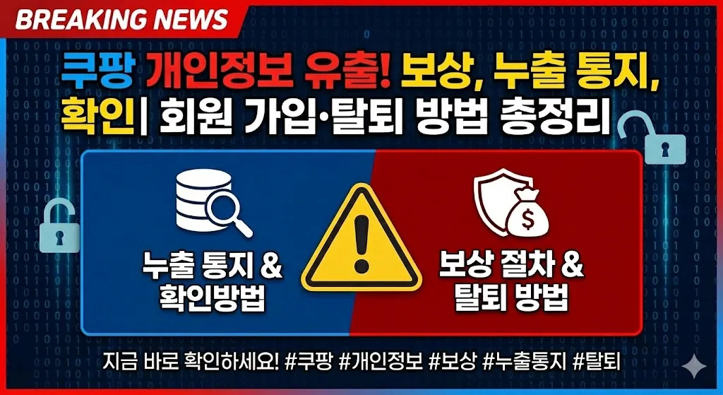 쿠팡 개인정보 유출 보상에 대해 알아보겠습니다. 2025년 11월 약 3,370만 건의 고객 정보가 해킹으로 유출되면서 많은 분들이 보상 절차와 대응 방법에 대해 궁금해하고 계십니다. 이 글에서는 쿠팡 개인정보 누출 통지 확인, 유출 여부 확인방법, 보상 신청, 회원 탈퇴 방법까지 상세히 정리했습니다.